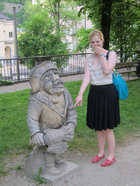 Remarkably, Fräulein Maria did not circle up the children for a sing along in the Dwarf Park, which is up a set of stairs next to the Pegasus statue. Allegedly, someone created the park in 1600 to honor some individuals who served the prince archbishop (A government leader who holds religious office too- what can go wrong?), and each statue represents an actual person and his or her actual style of dress.