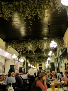 I’m thinking of a dark-paneled biergarten with actual foliage hanging from the ceiling, and I’m thinking of the two much older men sharing our table there who commented that I eat my food like an American because I eat with a hand in my lap. It sounds dirty when I re-tell it now, which is probably how they meant it at the time but I was too excited about my food to care.