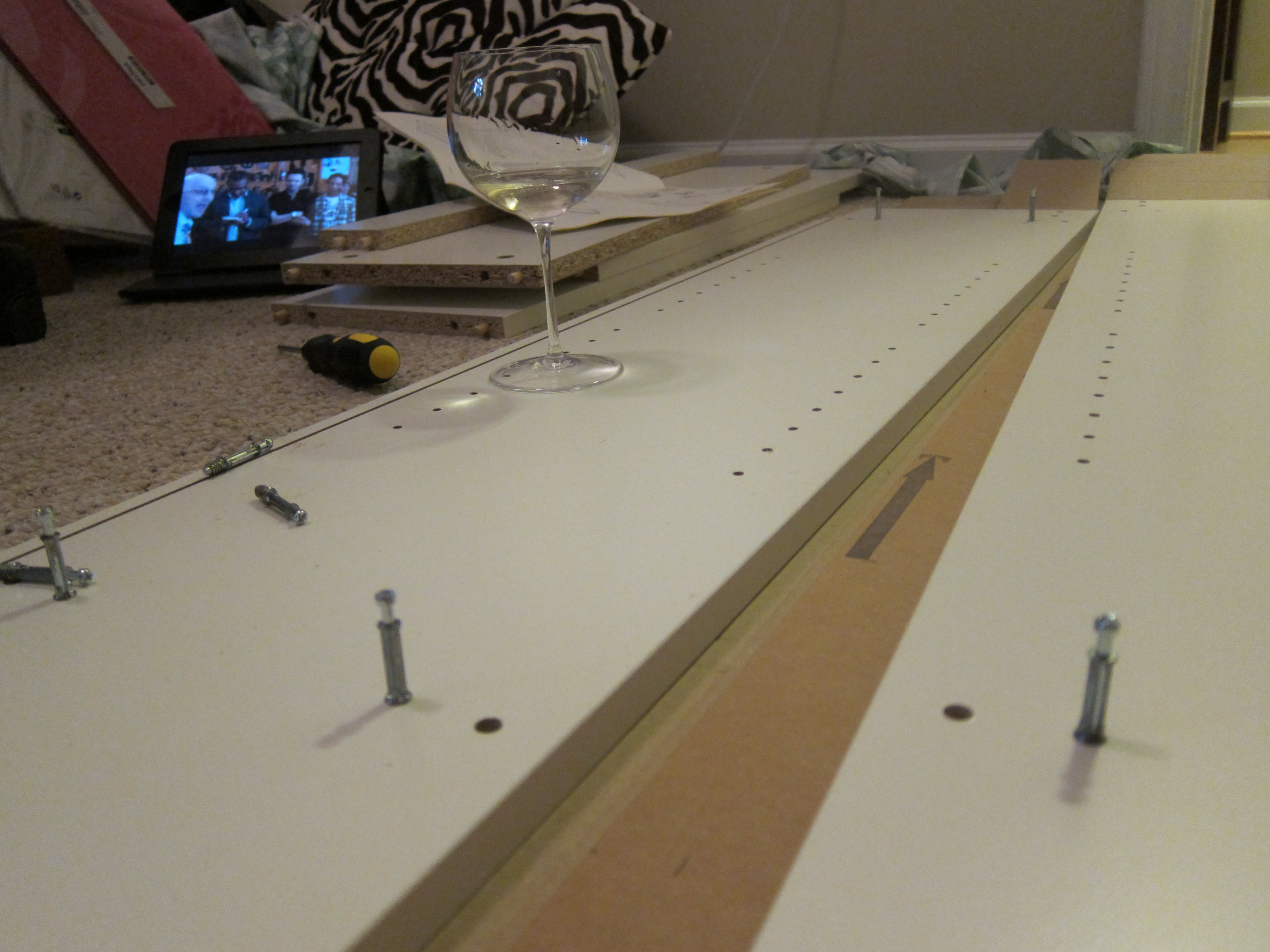 Currently, I have about 50 unread books in my possession. A handful of those are e-books, but the rest are hard copies. It should come as no surprise that I’m running low on shelf space in my home. This weekend I finally decided to bit the bullet and build 2 IKEA Billy bookcases for my home office. I have the scraped arms and bruised knees to prove it. That little graphic instruction manual doesn’t mention that, you’ll notice. It also doesn’t include a bottle of wine under the needed tools, which is a severe oversight.