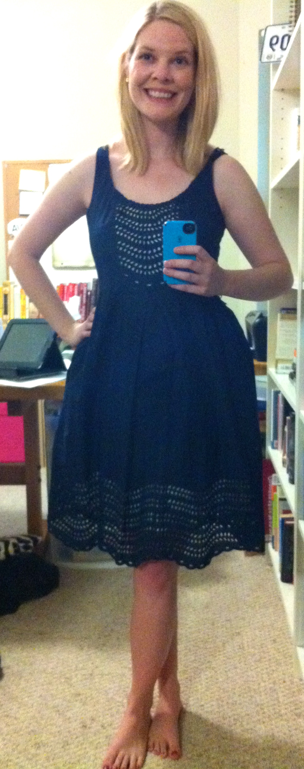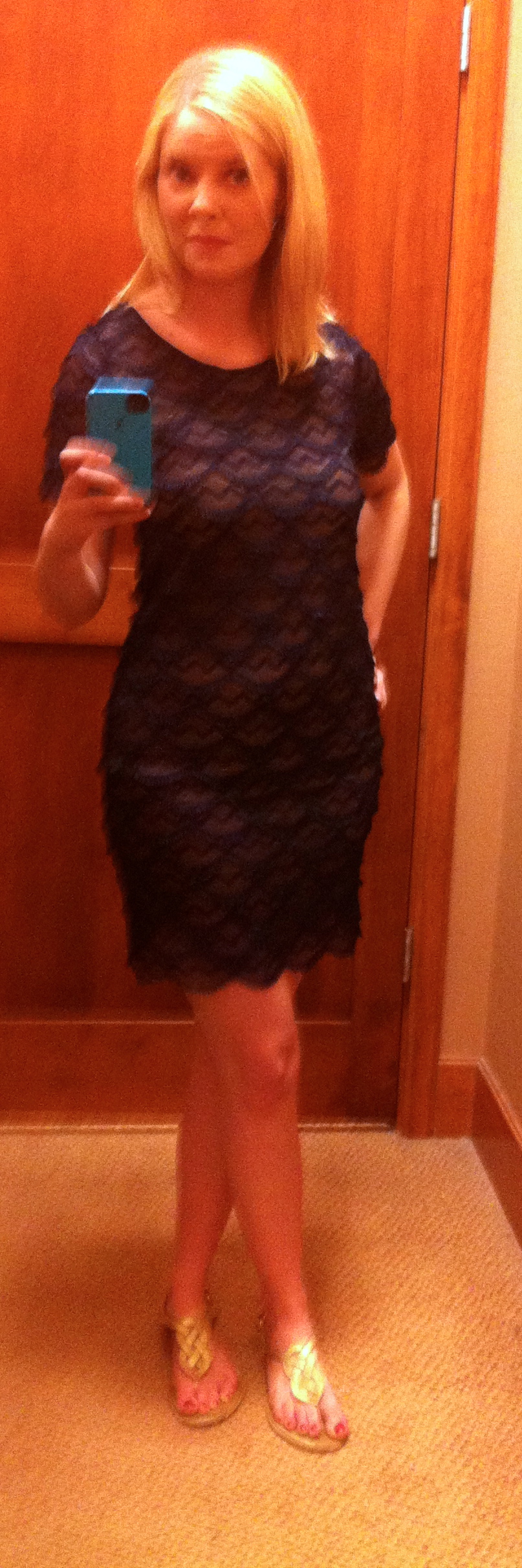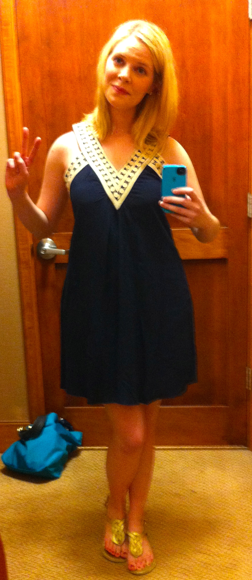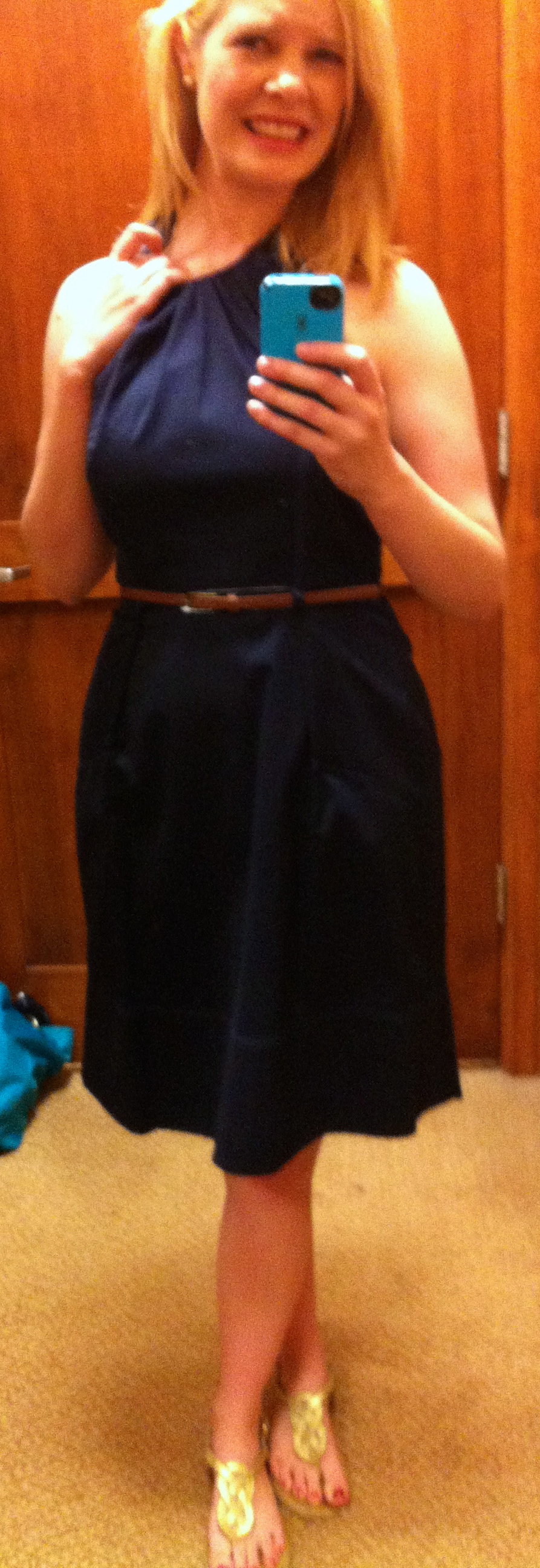 Dress 24: Oh! This one is totally cute and fits well and has a good shape and flatters my skin tone.   It’s not navy, but everyone will be drinking, right?