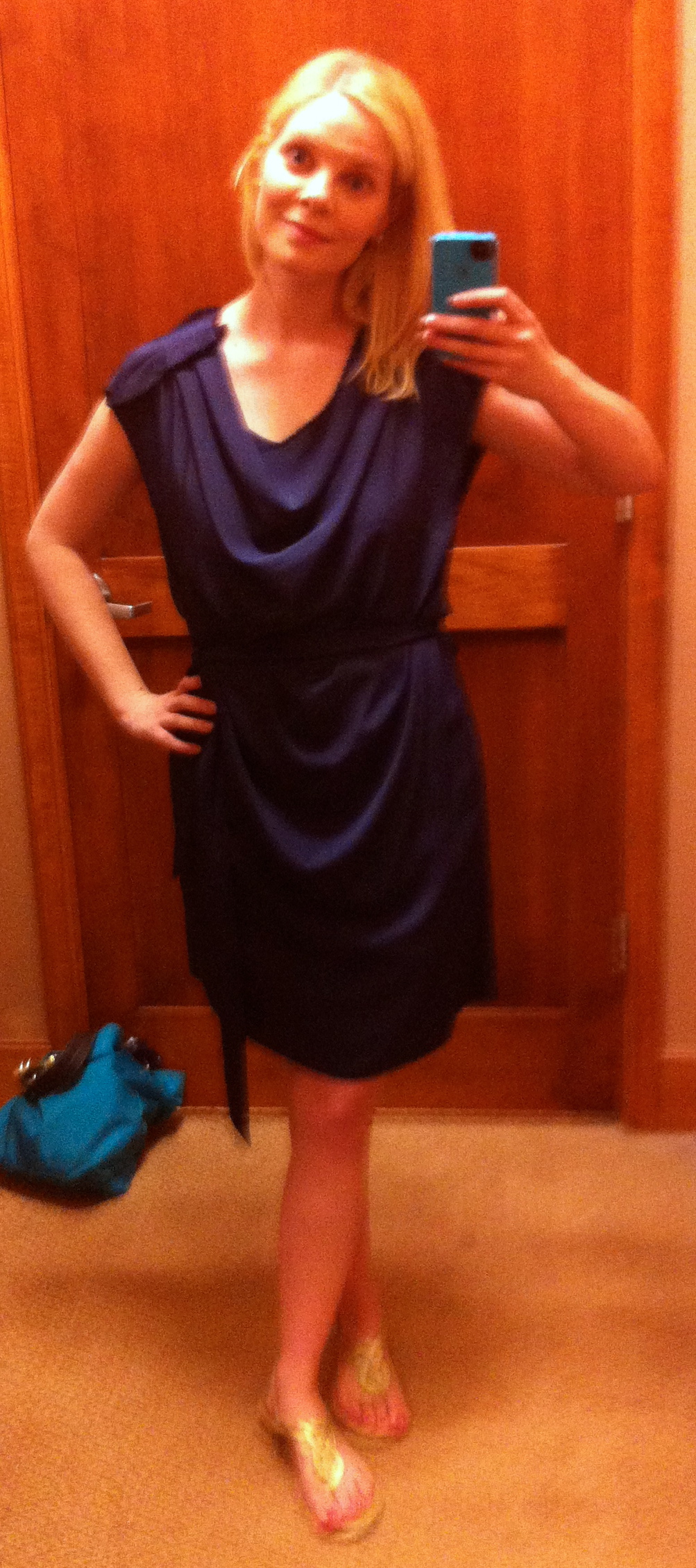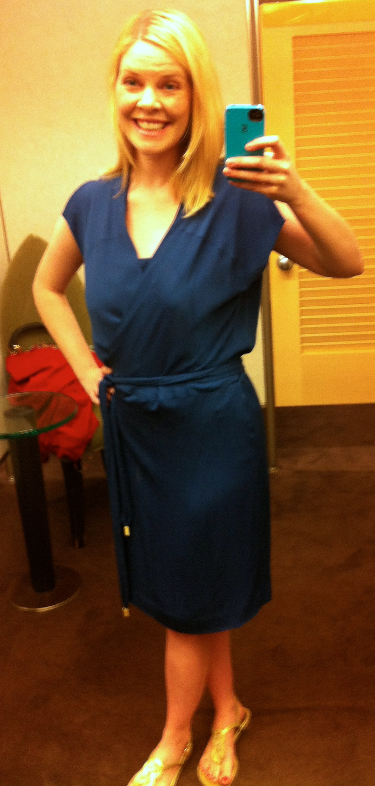 Dress 8: A famous Diane von Furstenberg wrap dress. I don’t care how flattering some people say they are; you can see my flanks. I’m like a show pony.  Also, putting this one on required extensive knowledge of the laws of physics, and thanks to a really sub-par senior year science teacher, I have no ability there.