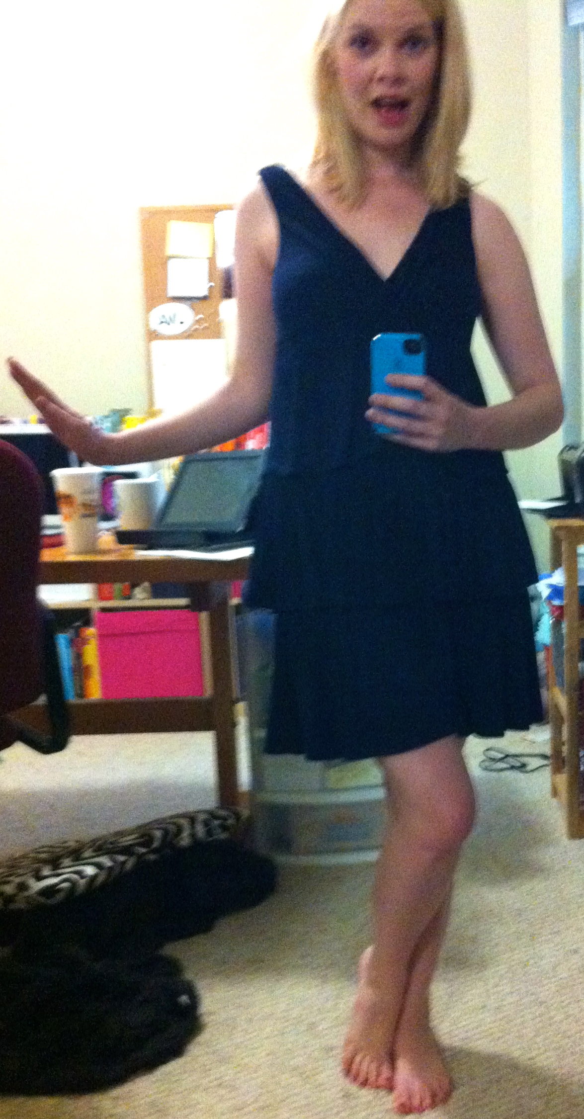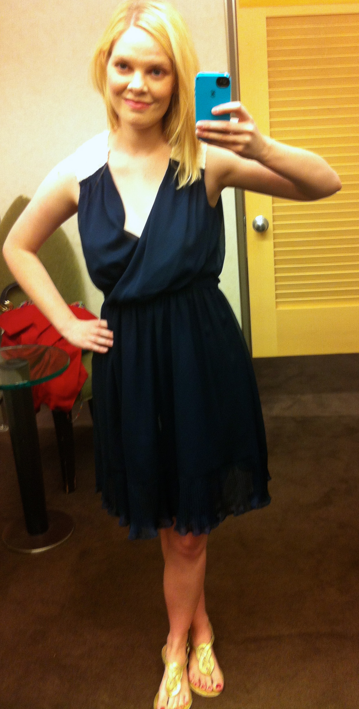 Dress 26: No, you’re right; this one does look pretty swell and my hair is suddenly fantastic and I should probably just go live in the Banana Republic dressing room because everything just works there.  But it’s so, “She’s got upper middle management written all over her,” you know?