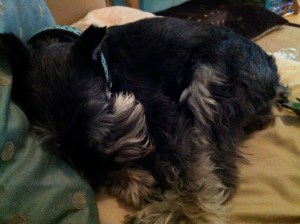In all photos, Heidi appears to be contemplating serious questions of great importance. If not for her lack of opposable thumbs and her inability to speak English, she could be figuring out the cure for cancer. It’s just the schnauzer beard and those gruff little eyebrows because I can assure you she’s kind of a lazy C-student and the camera can’t capture her dopey look.
